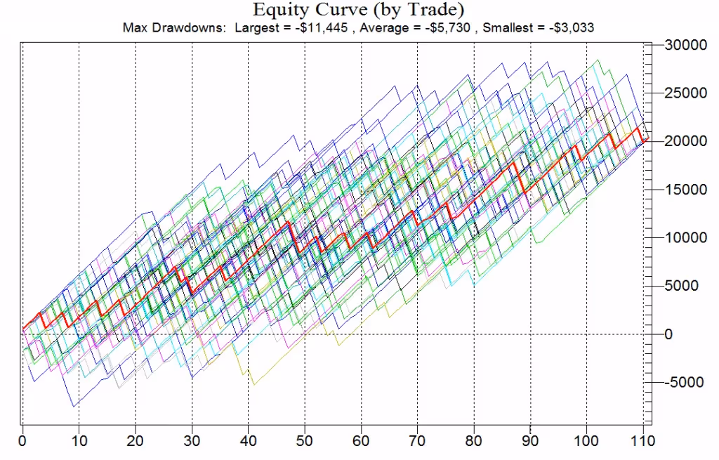 Could the backtest reports be fooling us ? To reduce the chance this could occur we complete a Monte Carlo analysis to ensure the system is robust and meets our risk requirements. The Monte Carlo results have shown that starting with a $10,000 account and a 16% drawdown limit we have a 8.9% chance of ruin and the Median Drawdown of 41.26% is higher than our drawdown limit. What can we do about this? Without adjusting the strategy rules or risk per trade it seems the best approach is to start with a higher account balance.